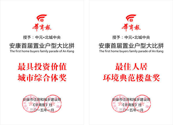 中元·北城中央2015年經過公司全體員工辛勤的耕耘,項目一期3至6#樓以及一期裙樓主題商業圓滿封頂,同時銷售業績在安康市中心城市房地產項目中名列前茅,贏得了政府部門和社會的廣泛好評。并榮贗2015年度重點項目建設“先進單位”獎章。 發布時間:2016-05-11